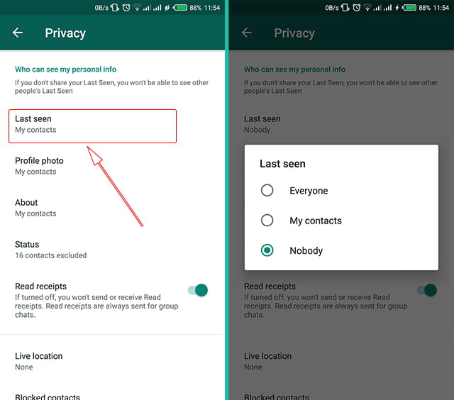 - Ketuk opsi “Last seen & online” untuk mengatur siapa saja yang dapat melihat status terakhir dilihat dan status online Anda.